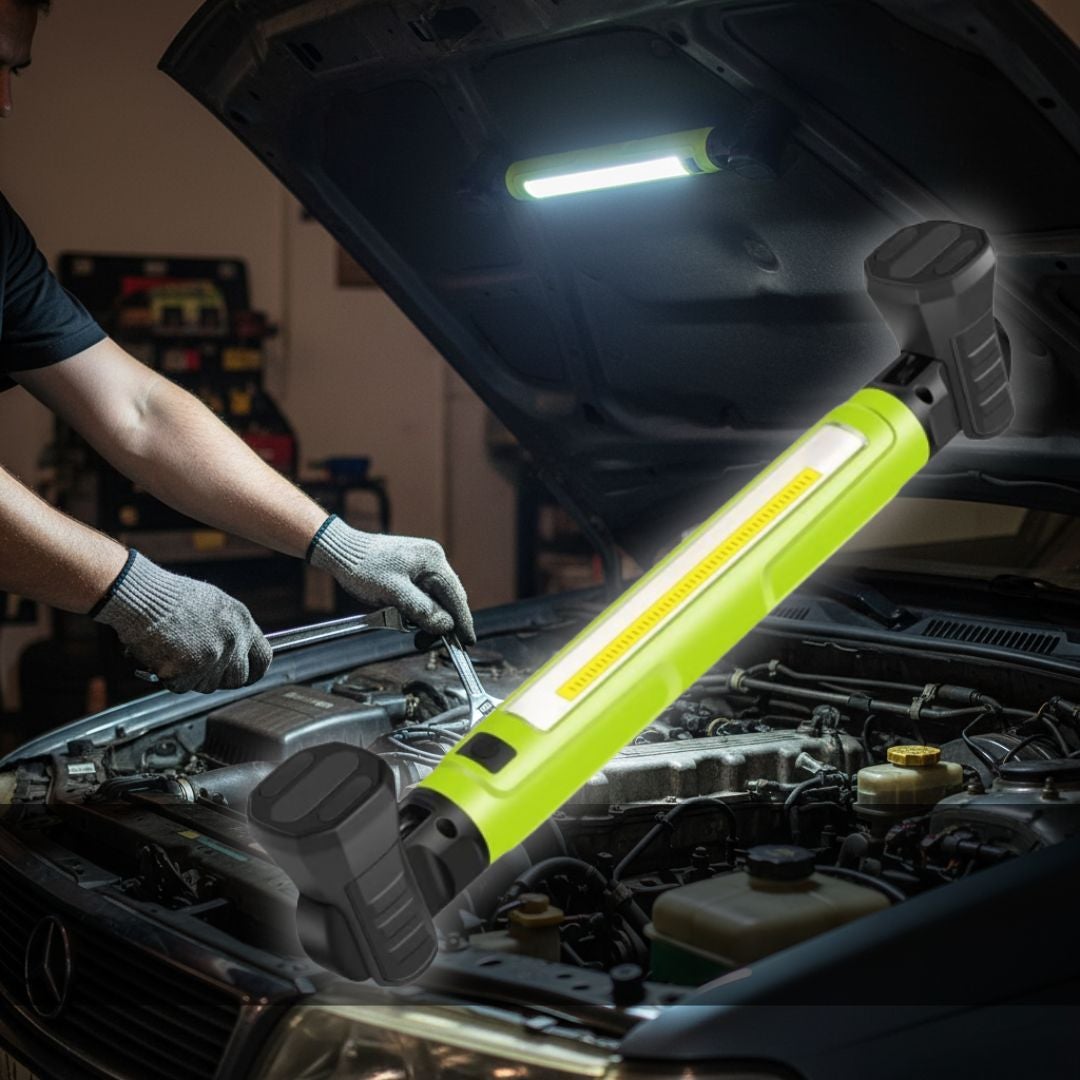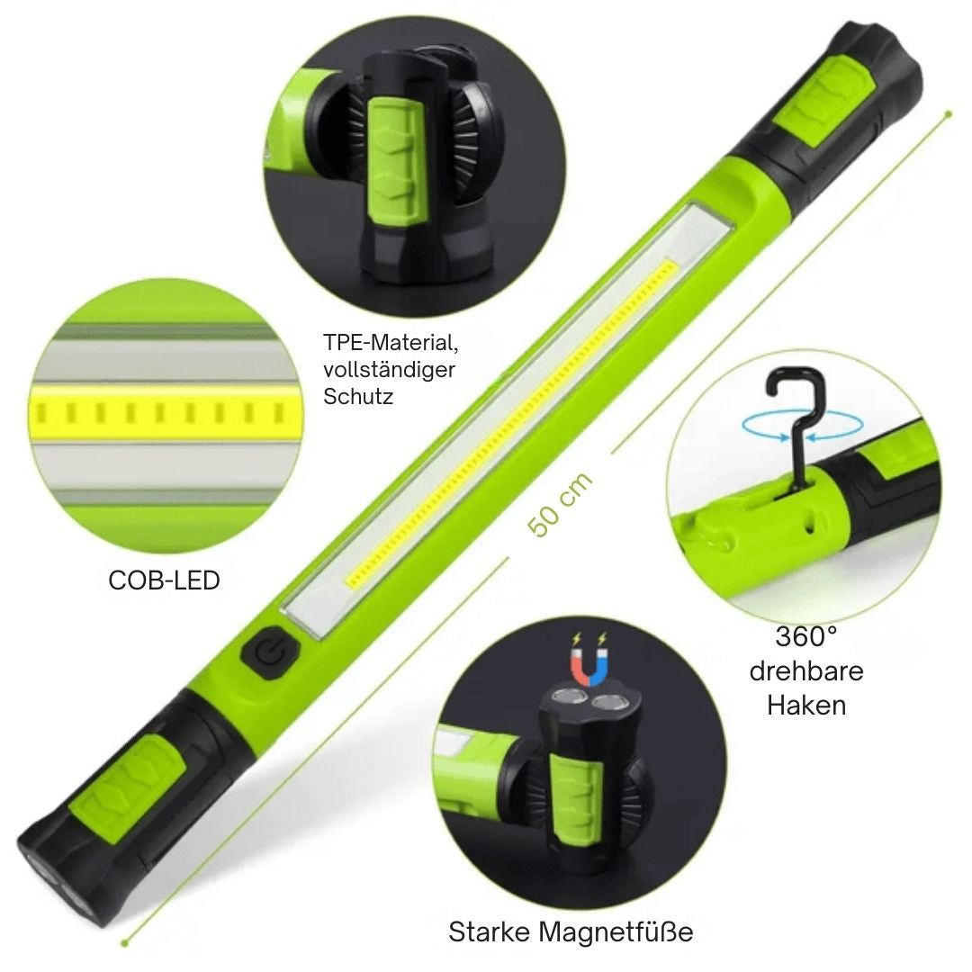 Die Handy-Taschenlampe macht nur einen kleinen Lichtkegel, harte Schatten und du kneifst die Augen zusammen. Diese Lampe liefert eine breite 9,2-Zoll-COB-Fläche, die den ganzen Arbeitsbereich ausleuchtet statt nur einen Punkt. Mit zwei Helligkeitsmodi und 360° drehbarem Kopf richtest du das Licht genau aus, ohne dich oder dein Werkzeug ständig zu versetzen.